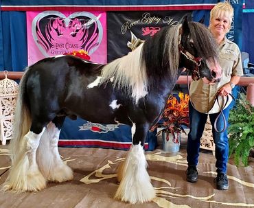 This incredible TINY Gypsy colt comes from bloodlines second to none. See under WINDSOR's page (Sire) to see the lineage... which goes on and on. Dalton measures 10'2 on the stick. If you want proven show bloodlines, he is your boy.