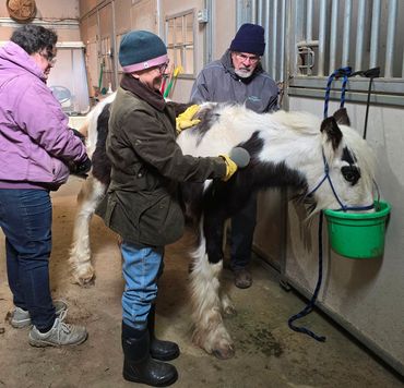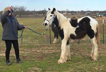 As I went out to check on Wilemina and her impending birthing, I found she had died unexpectedly, leaving Dandy as a LITERALLY NEWBORN a few feet from her. He hadn't even stood yet. Never in 23 years have I faced such a situation ! As I freaked out for a moment, up came my MINI Gypsy mare, Telary with her two month old filly by her side. I needed to get Dandy inside but he was too heavy to carry. I needed him to follow someone into the barn. Sweet Telary, with her filly, walked alongside me and we got him into a stall. There are no words to express my gratitude to this mare :(