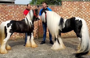A Wizards Spell Windsors BEXLEY is a TEENY 2021 Proper Purebred MINI Gypsy Stallion. (Or can be gelded) .He measured 41" tall on 7-2023. OH ! The feather on this boy ! His Dad is the infamous Windsor of Kent, Grandson of legendary Jack Sparrow.