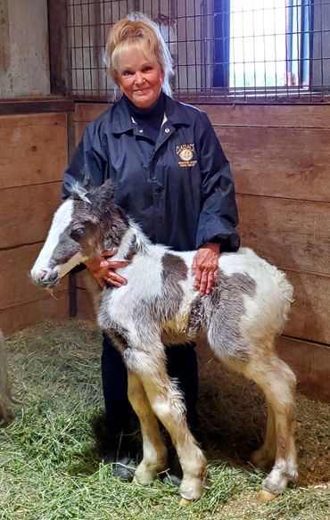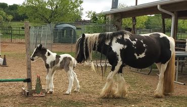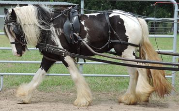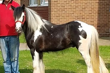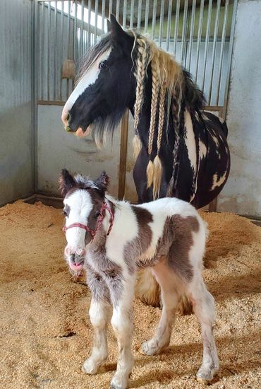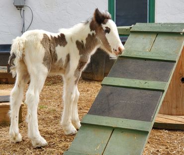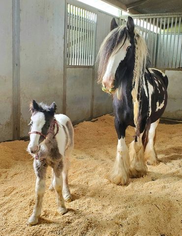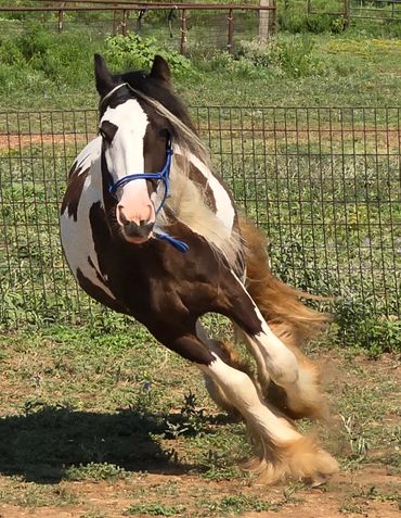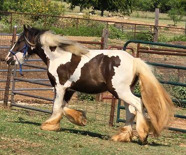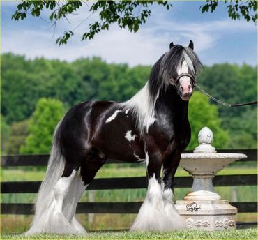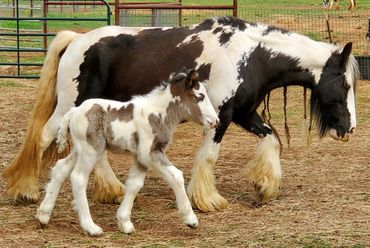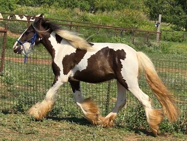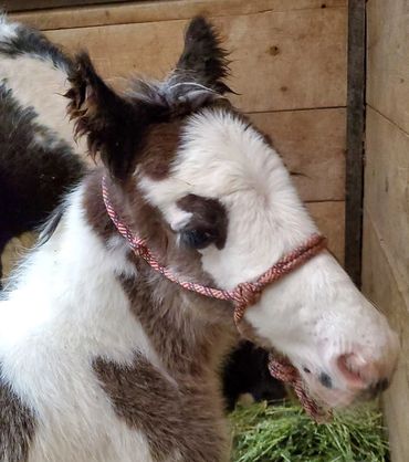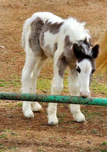 This flashy striking proper purebred MINI Gypsy gelding was born 4-7-23 to A Wizards Spell DOOZIE and A Wizards Spell WINDSOR. He should mature just under 12 hands. With this incredible lineage he would be a perfect show or driving horse. Great for farrier, trailer loads, happily goes over obstacles.