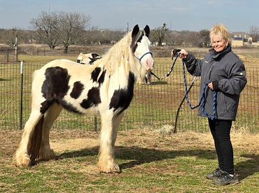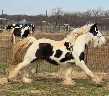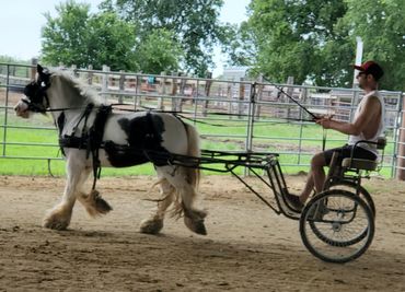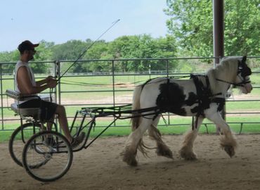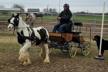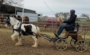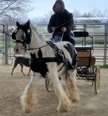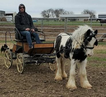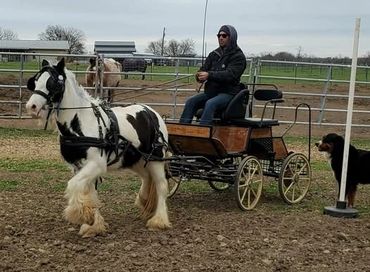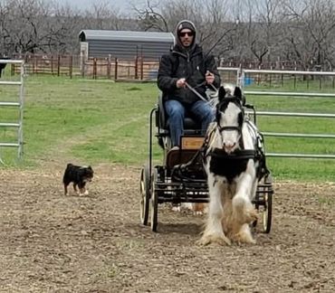 He is FLASHY AND FABULOUS ! Drives both two wheel and four wheel carts. FIVE solid months of driving training and so smart !